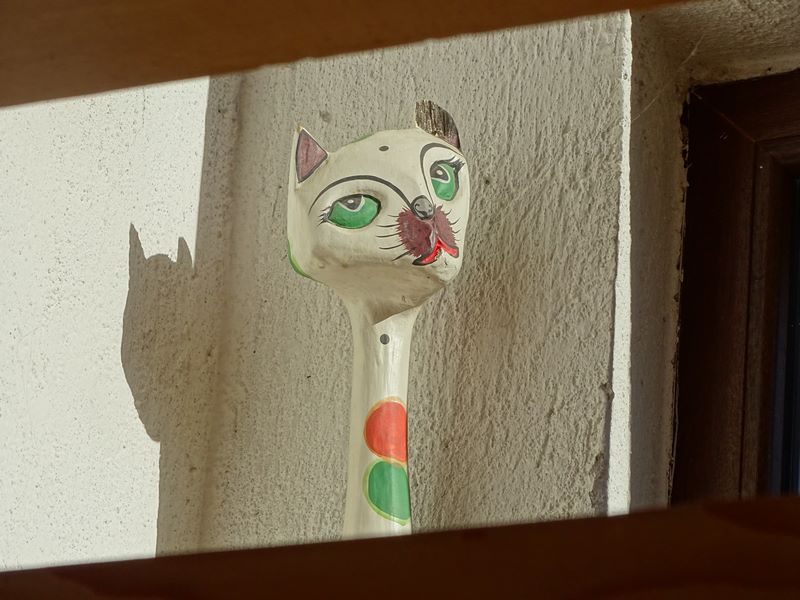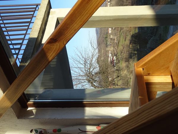 Really cold morning, the outside temperature was showing minus eight degrees and the inside was pretty low and I was waiting for that sun to come up so that I didn't have to light the fire. I went back to bed and to the warmth until I noticed that the sun had shown it's face, I opened the curtain to the stairwell and literally watched the thermometer rise and it didn't take long. I tidied round and as I walked back with my coffee and breakfast from the kitchen to the table in the stairwell, there was a knock on the door, I realised I hadn't put the key on the outside of the door so I opened it for her. She brought with her two chocolate croissants and two chocolate bars and one of the croissants went very well with the coffee.