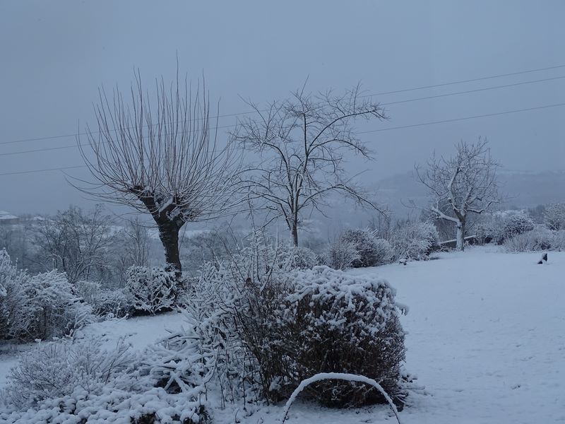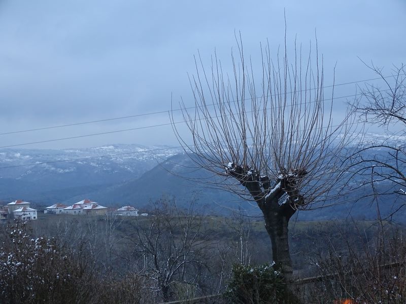 It was minus eight again this morning so I stayed in bed until eight, made coffee and settled on the sofa. I didn't bother lighting the fire the sun was up and the temperature was rising which is so good, it means that I'm using less wood. It's not that I don't have enough, it means I have less to bring into the house from the porch and I've taken to carrying one under each armpit while I go back into the house. Haciber came round with food for me in the form of five sweet rolls with marmalade jam inside, an apple and another sweet biscuit and was telling me that Germany had had some very heavy rain.....international new delivered to your door.