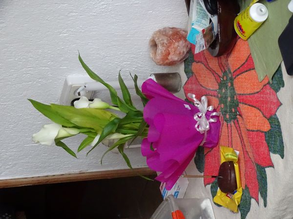 Around twelve I had a visit from my student and her father and they came bearing gifts. She brought me a peace lily, an individual cake with a candle that was really appreciated. I questioned her about sciatica, her mother suffered from it last year and I remembered that she had physio and it turns out that it's in Djebel so I might see if I can book some private sessions. The father was very kind and filled up one of the log carriers for me with oak so that the fire burns slower and much hotter and I've got enough for tomorrow. It also gave me the opportunig to hand over their Christmas presents. It's a little late in February but I have more to hand out when I can get round and about again. Another phone call from a lady I used to work with when I was sixteen and she was nineteen, it's one of those friendships that has stood the test of time. An email from my son and then a phone call later to follow it up, he'd not heard about the fall so I gave him and update. He also said that my grandson would love to come out and visit in the summer and that's fine by me....we got to know each other better when I stayed at theirs before the first fall. I also had a phone call from my grandson and I think we spoke longer on the phone that we die all over Christmas when I was in UK.