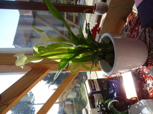 Silly night, I woke up at four thirty and read for a couple of hours until it was time to start moving. I think I slept a little more upright than I should have done and I felt odd twinges that I wish I didn't have. Still...it is what it is and I know it's going to be a slow process. I made toast for breakfast and coffee and generally tidied round, took the yellow leaves off the Peace Lily and found a pot for it and I've just remembered I should give it some water.