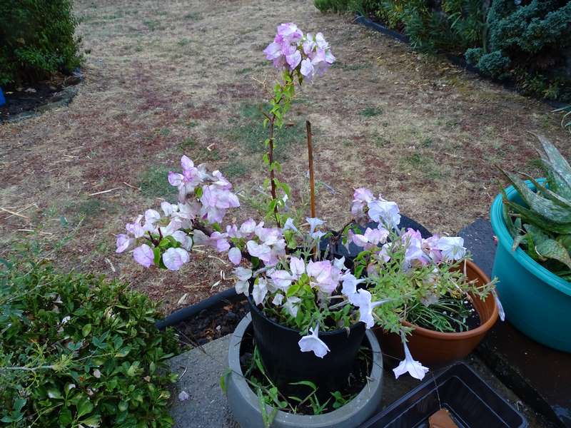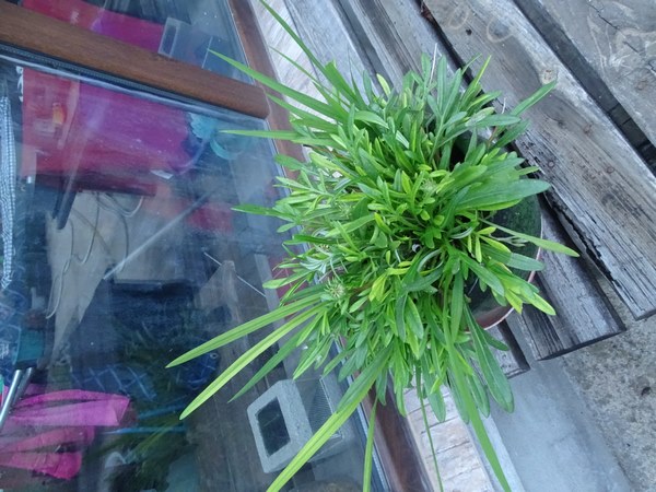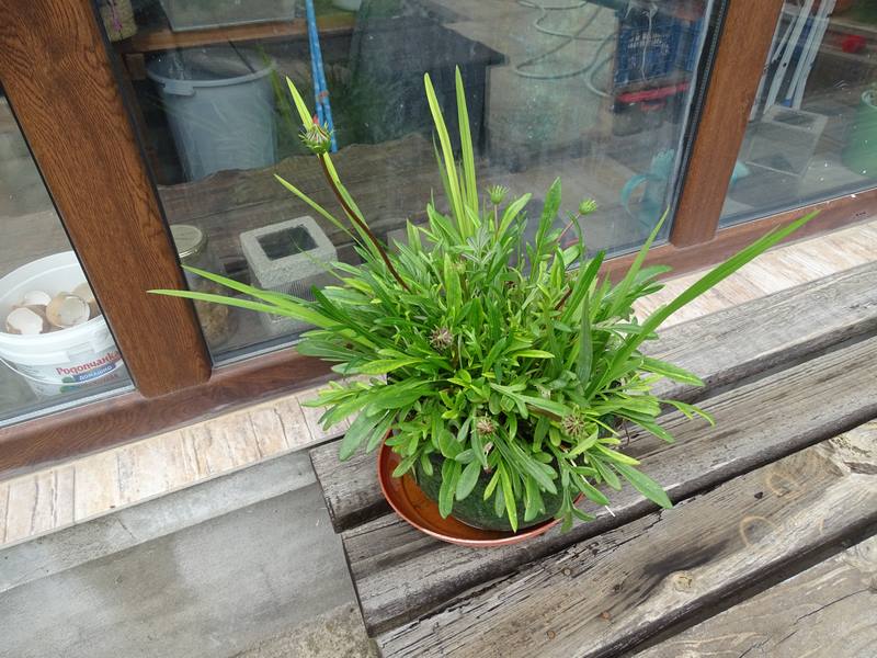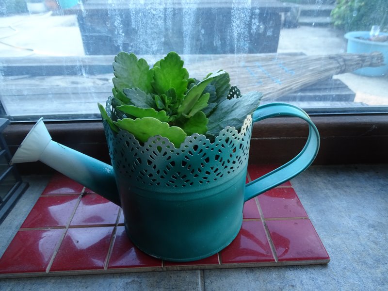 I bough firelighters, I was down to my last packet, walked to the Nipper and intended stopping at the supermarket at the bottom of the town but my plans changed. I should have gone to the little girl's room before I left the car-shop but didn't and thought that walking round the supermarket was risking it a little so the eggs are still on the list for another day. I was home by five, first job was to locate the green dish that used to sit under the green flowerpot that the freesias are in so I looked round the terrace. I made the mistake of looking for a normal sized saucer but noticed that there was a smaller one that was the same colour and I remembered that it always was smaller. I substituted the current one with the one from under the green pot, green pot and green base had now been reunited and bot are sitting in the porch on the window sill. There are still lots of sun daisies to flower and to date no flower buds on the freesias but the sun and heat in the porch should trigger them.
