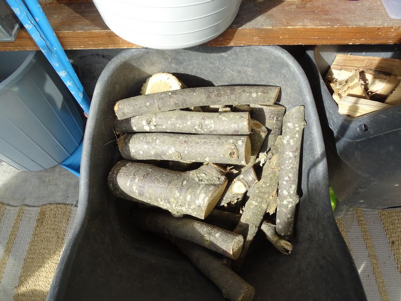 I went back to my chopping getting enough smaller wood so that there was some heat coming off the fire at night. There's plenty already cut but I'd rather be chopping it before the snow arrives and storing it ready and I've developed the technique. It's easy to spot the ones that the axe goes straight through but the ones with twisted grain take longer.... I'm refining that that technique using the axe as a wedge and hitting it with the lump hammer....seems to work OK. I left ones that I'd chopped in the log carrier in the woodstore and wheeled in one container full of chopped wood and another of last years medium sized or starter wood. The rest of the afternoon I lay on the sofa with a couple of really difficult sudoku, managed one and rubbed the other one out three times until I was nearly through the paper so I might need to print it off again.