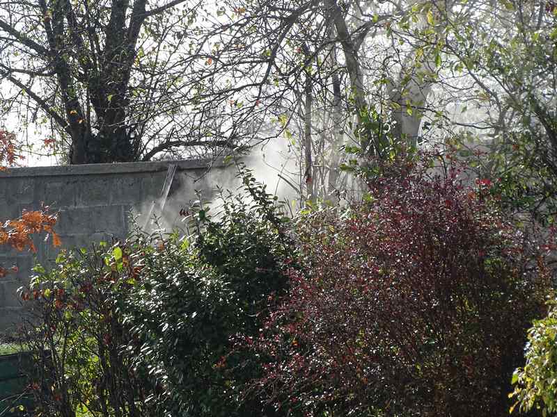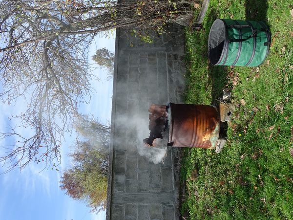 Bonfire was the first thing to get going, the rubbish I'd burnt earlier in the week had more or less all burnt away so I didn't have to empty the container before this one was underway. It lit first time, the clouds had cleared, sky was blue, the sun was up....a perfect morning to send smoke signals to Indians and there was another bonfire in the next village when this mad thought struck me....I do have a weird sense fun and strange ideas but I can't see much change happening at my time of life. I'd climbed up onto the wall at the bottom of the garden and sat watching the world and thinking what a beautiful place I'd settled in....no one to bother me, walled garden to keep the livestock out and peace and quiet apart from the dogs in the next village. They really do require a legally applied solution...but it's fighting the odds.