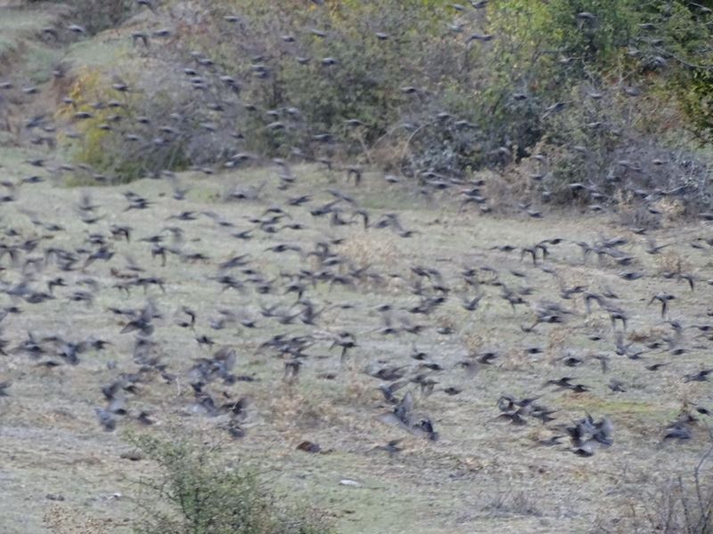 As for today, there was a hint of morning in a red band of rising sun, the clouds were still in evidence but the day got better but not much warmer. I fed cat the last sausage, fried tomatoes on toast for me since there were no eggs and those are top of my list next time I go into Djebel. I hadn't made my mind up what I was going to do with the day, I'd walked the garden, heard my neighbour hanging around with the hammer and assumed that she was still repairing the fence to keep out the animals. She's made a good job of clearing up the old footpath down to the next village, she'd cleared the bottom of their stone wall and put lots of branches above it and now it looks from my side impenetrable. I suppose we need to see what it fares like in the winter when the animals are foraging where they can. On the drive back from Djebel I noticed that the hay that one of my sheep farmers had put ready to feed his sheep during the winter was already being attacked by cows....they go where they want and little stops them.