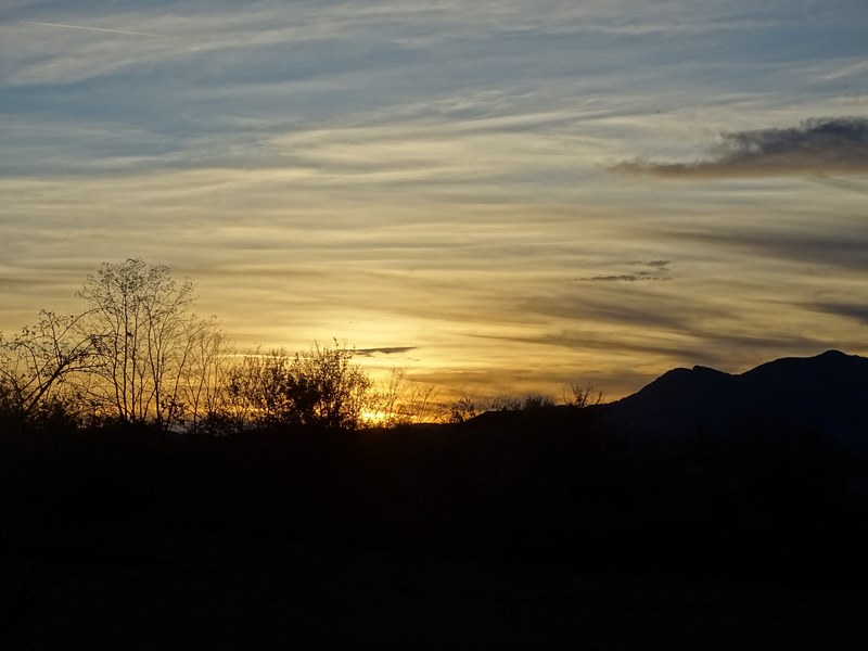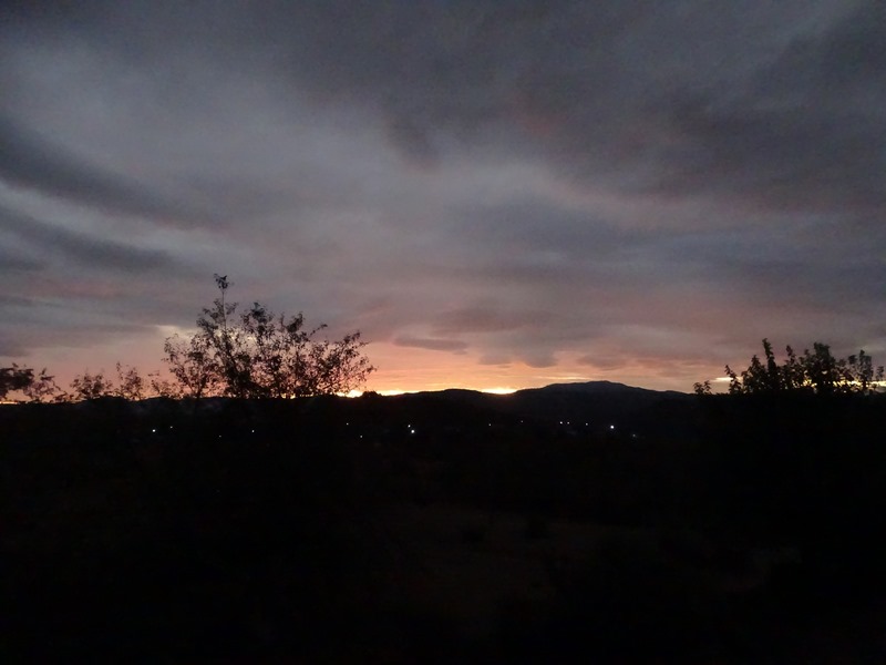 From my bed this morning I caught a glimpse of the breaking dawn spreading across the mountains and I was forced out of bed to watch it unfold. It was still quite early and on to the balcony, the sun wasn't up yet but the impact on the rest of the clouds all around made me keep the camera snapping. Eventually the sun made it through but it didn't stop long, after that the clouds gained momentum, covered the sky and the rain started to fall around nine and it hasn't stopped since. With the clouds and the rain, the overnight temperature stayed more or less the same all day and without the sun to warm things up, it's been a cold miserable day. I went downstairs and made a health drink of honey, the juice of a lemon, some grated fresh ginger, a spoonful of turmeric and a pinch of pepper topped up with hot water. I blitzed it in the liquidiser but I was still chewing fresh ginger at the end despite the fact that I'd grated it beforehand.