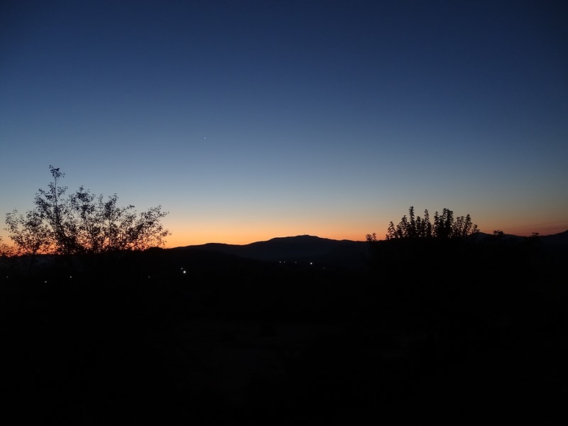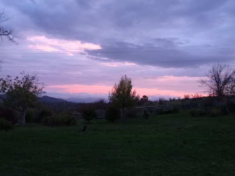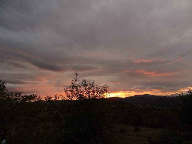 Emula arrive just before supper to let me know that there is a 'Mevlit' going to be said for Remsier, it's been a month since her passing. She was one of the ones that welcomed me when I first came to the village and I remember her trying to get me to drink tea made from the linden tree in the garden which I never did get to like. She with Haciber took over the kitchen ladled in the sugar until it was like syrup but that still didn't convince me. So tomorrow I'll be at the house at nine thirty more or less and it will be a good opportunity to get back into the village and meet up. Quite a pleasant sunset, the clouds were disappearing along with the light and it could be quite a cool night. No frosts so far...could this be the night...time to throw another log on. LN.....It was pleasant sitting out on the bench in the sun on my balcony mid-morning...that sun was quite hot.......LN