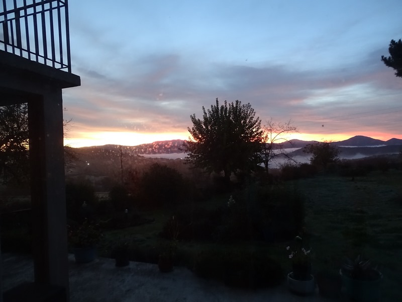 Lovely start to the day but it was downhill after that. After taking the photos this morning very early, I went back to bed and woke up at eight thirty and felt much better for it. I had not plan for today, there were jobs to do but nothing specific but the first was to provide sustenance for cat so one sausage for the cat and the other went into an omelette with two slices of soft cheese for me. I had two loads of washing done in quicksticks and onto the airer in the corridor and despite the sun didn't put in much of an appearance, it didn't take too long to dry. The thick stone walls of the house absorb the heat and despite the fact that it was only nine degrees this morning outside, the house still maintained twenty two degrees and is still holding at twenty three at eight this evening.