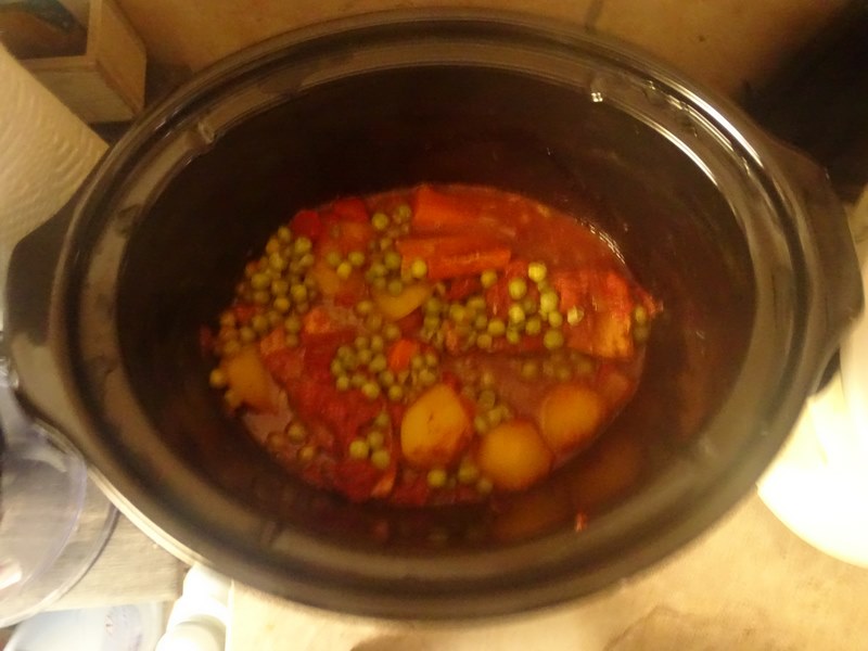 I put supper in the slow cooker this morning, I'd taken chicken drumsticks from the freezer last night and didn't realised that there were eight of them in the packet. Into the slow cooker they went with curry powder and a tin of chopped tomatoes and a little ginger spice. It was in by ten, cooked on high until twelve and then down to medium until five thirty this evening when the aroma was tempting and the hunger grubs were nibbling away. I was too lazy to make pasta or rice to go with it so I took the end of the loaf and had bread with it dipping it into the sauce ....four more still in the cooker so cat will have the remains of my supper in the morning and I might even throw in another leg for it.....it didn't fare too well this morning.